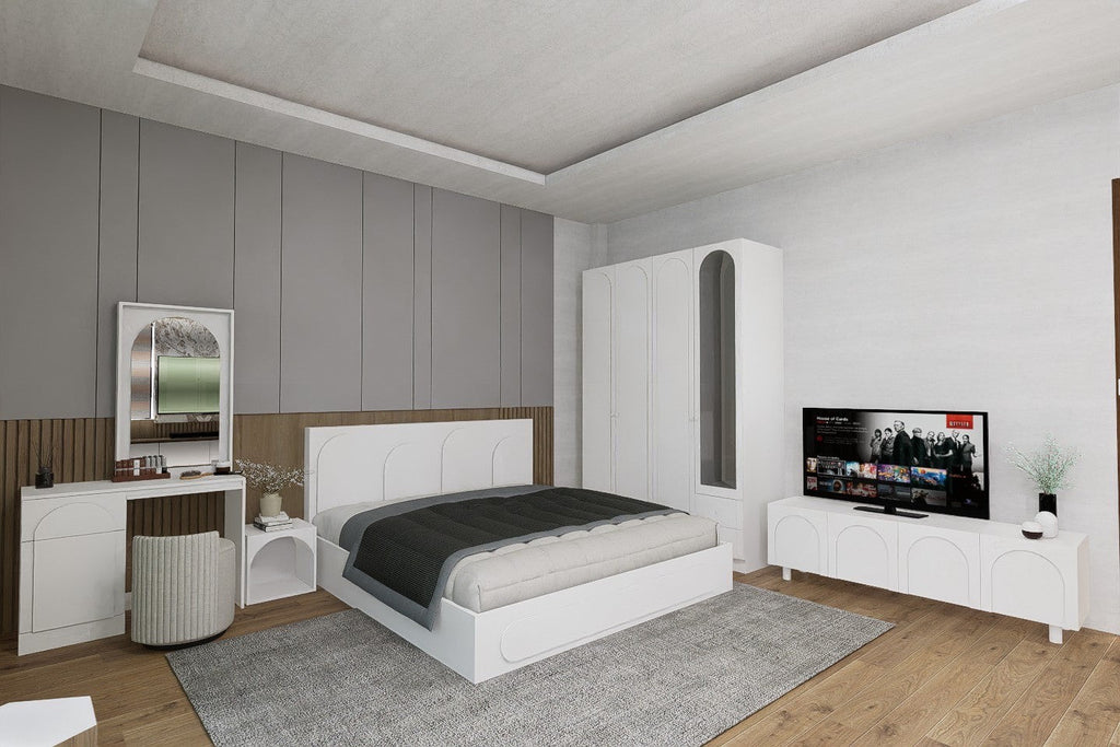 Alinda Mira Modern Display Shelf Curved Door Display (White)