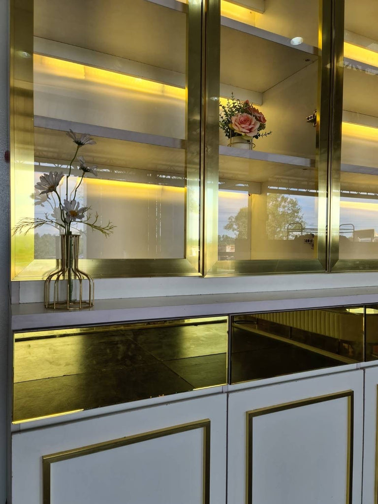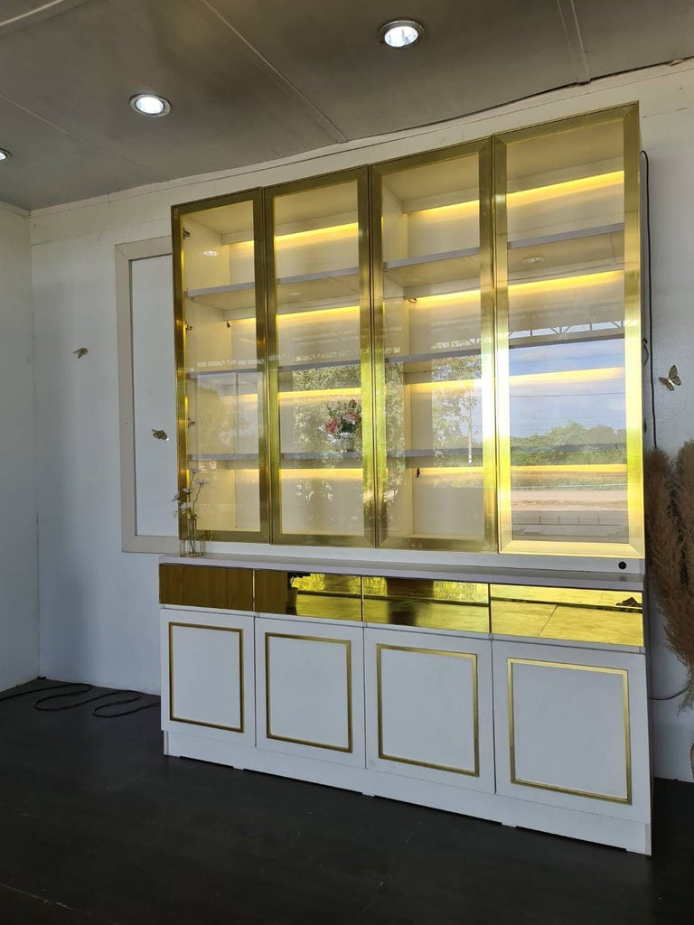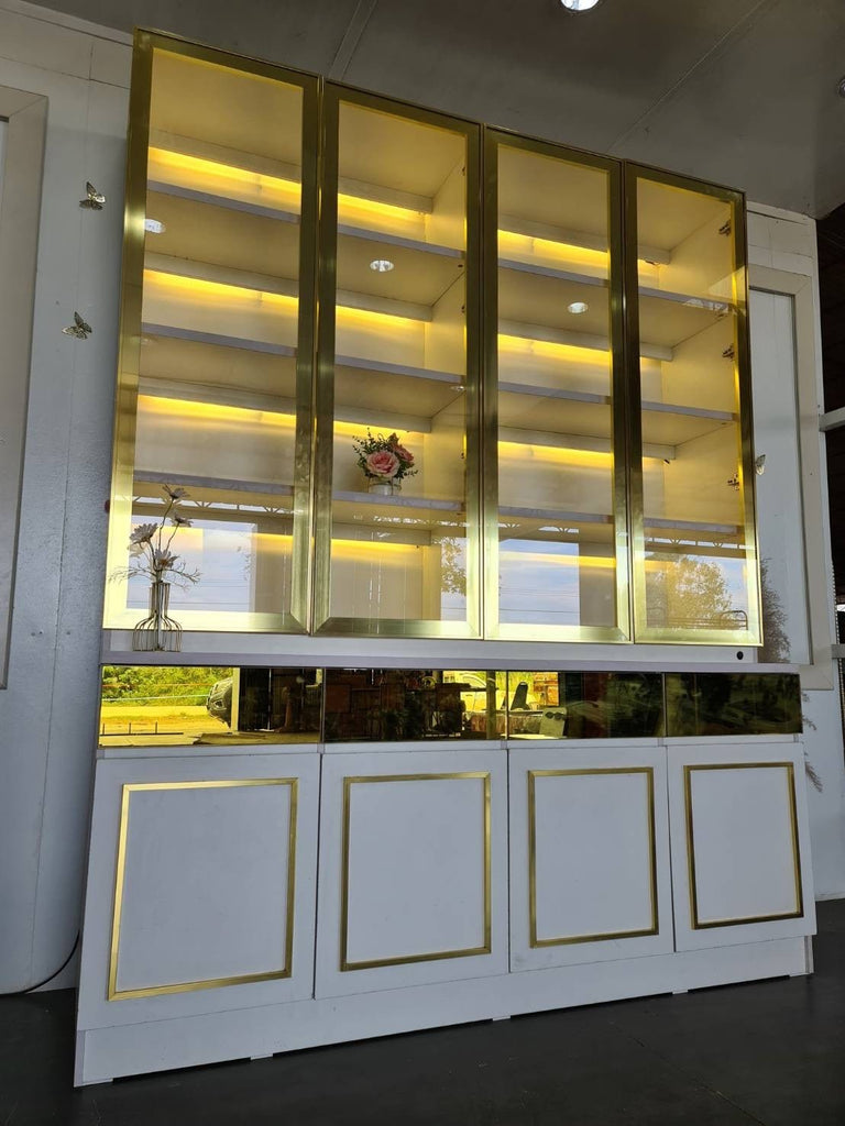Alinda Curved Door Display Shelf White Frame Gold